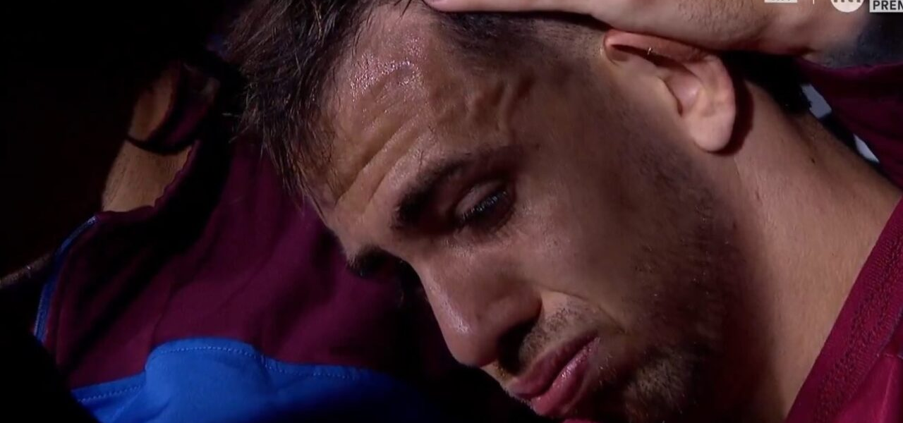La fuerte sensación de que sufrió una lesión grave se potenció cuando se puso a llorar al acercarse al banco de suplentes. Sus compañeros intentaron contenerlo. Después, le aplicaron hielo en la zona afectada. Además, en este partido volvía tras recuperarse de otra lesión. Y en febrero había tenido un problema en un hombro.